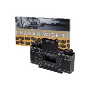 DIY Sharan SW-35 Make and Shoot Panoramic Pinhole 35mm Film Camera Kit. The Wide-35 is built on the success of the Sharan STD-35 and SQ-35 pinhole camera kits. Using a similar innovative clamshell design, but re-engineered for only easier assembly, the Wide-35 takes panoramic photographs. The images are dramatic - 2 1/2" x 1" negatives using a sweeping perspective plus a wide angle view. Made from thick, black cardboard with plastic advance and rewind knobs, the Wide uses 35mm film and comes with a plastic tripod mount. The parts are pre-cut and assemble quickly with tape, not glue, to the sized 5 1/2" x 2 3/4" x 1 1/2". The Wide-35 is often a beautifully designed and manufactured pinhole camera, as we now have come to expect from Sharan. Enjoy new creative possibilities as well as the possiblity to capture "the big picture". Sharan Japan